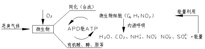 整個(gè)生物除臭過程可以用下式示意圖表示: