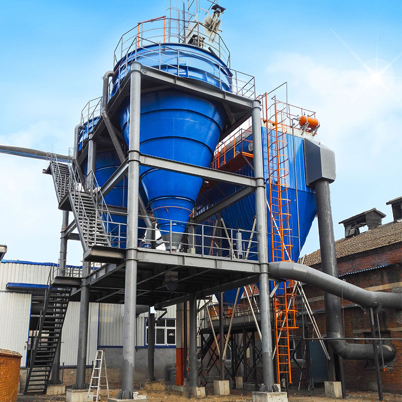 旋風(fēng)除塵器使含塵氣流作旋轉(zhuǎn)運(yùn)動,借助于離心力降塵粒從氣流中分離并捕集于器壁,再借助重力作用使塵粒落入灰斗。在常溫條件下,作用于粒子上的離心力是重力的5-2500倍,旋風(fēng)除塵的效率顯著高于重力沉降室。大多用來去除0.3um以上的粒子,并聯(lián)的多管旋風(fēng)除塵器裝置對0.3um粒子也具有百分之80-85的除塵效率。